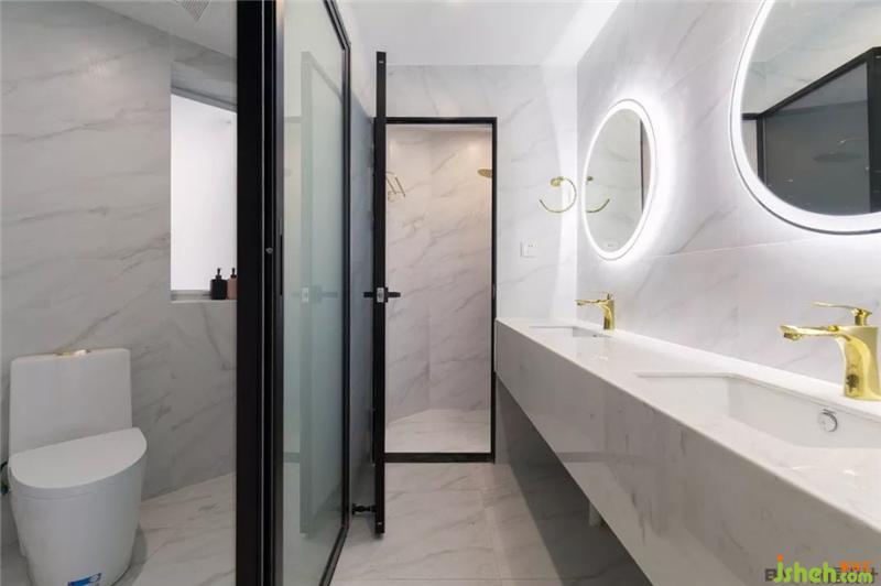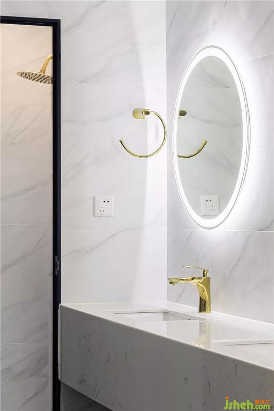 馬桶、淋浴區(qū)、洗漱臺三分離,兩個洗漱臺、兩面帶燈的智能鏡,再加上臥室里的兩個衛(wèi)生間,每個區(qū)域都互不影響,民宿衛(wèi)生間的使用問題也解決了。室內設計師