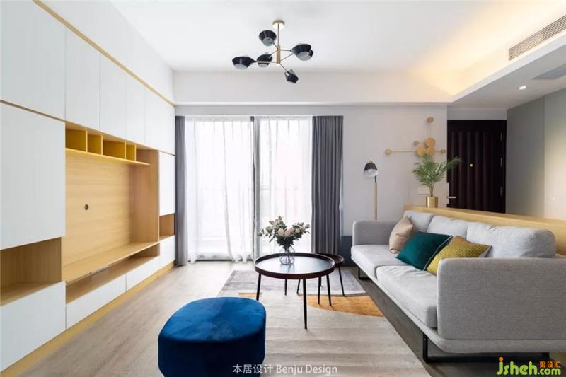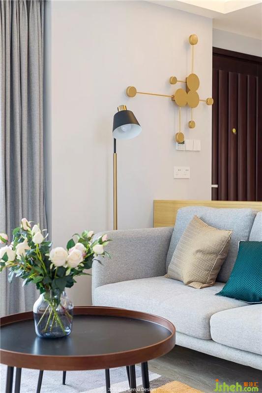 客廳沒有做復(fù)雜的軟裝設(shè)計,采用原木+淺色系,干凈淡雅。簡單的沙發(fā)加落地?zé)?,沒有過多華麗的修飾,整體簡單整潔。室內(nèi)設(shè)計師