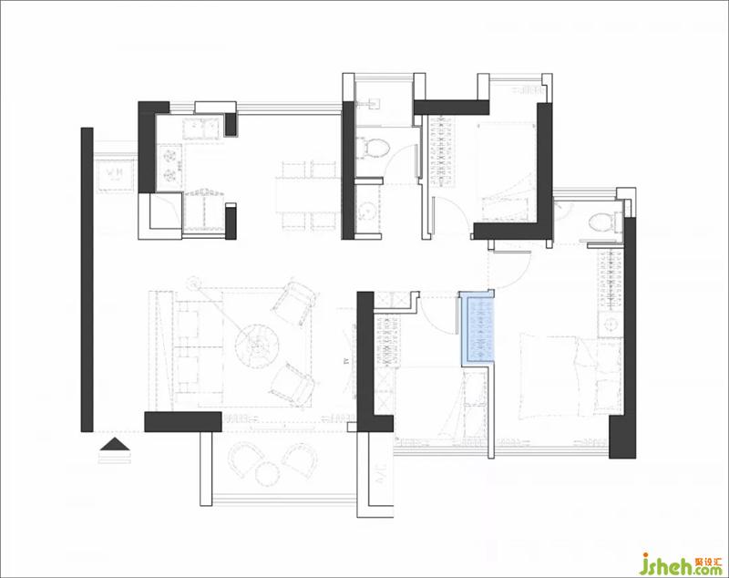 依據(jù)業(yè)主要求,這間房空置,留作倉(cāng)庫(kù)使用,增加收納空間。室內(nèi)設(shè)計(jì)師