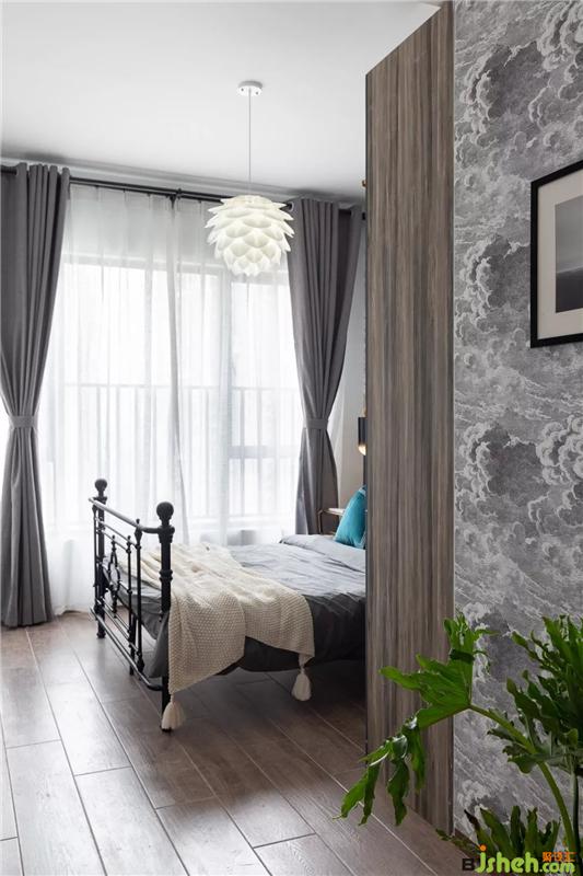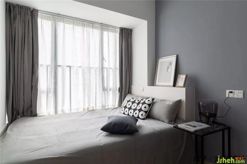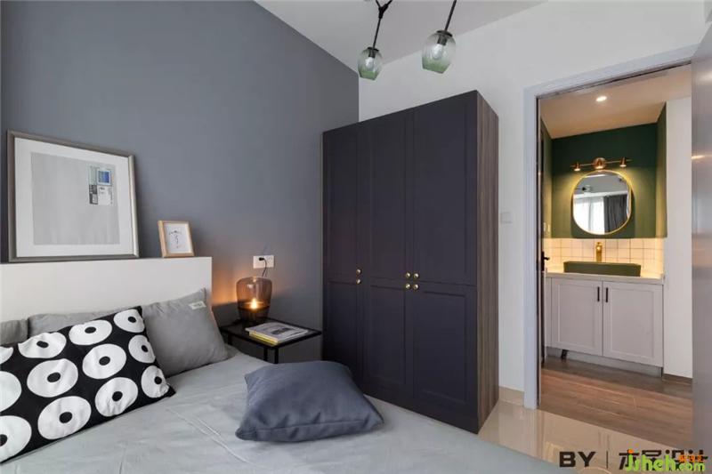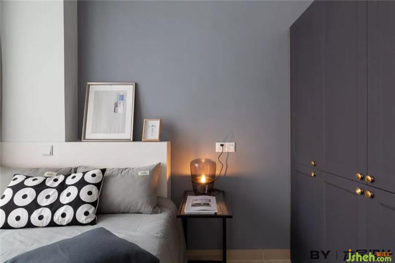 次臥與主臥風格保持一致,沿用大面積的灰色調(diào),衣柜也是相同款式。