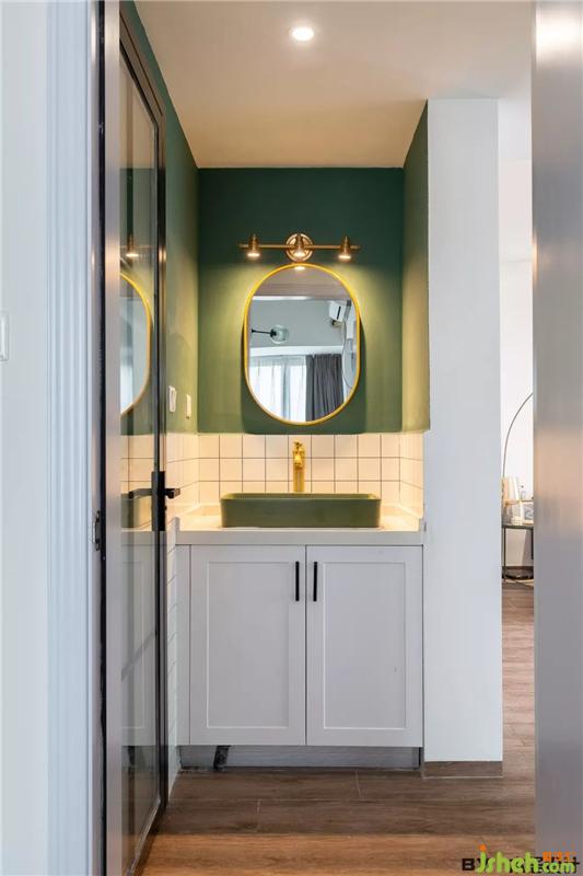 我真的沒有想到,有朝一日,我居然會愛上別人家的洗手臺。墨綠色洗手池,再加上復古造型的水龍頭和鏡前燈,復古的氣息更加濃郁了。