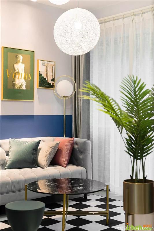 北歐輕奢風的黑色大理石茶幾,臺面紋理清晰,簡約的桌面看似平平無奇,卻在無意中奪取了大家的視線??蛷d的軟裝設(shè)計多數(shù)以圓形為基礎(chǔ)進行,壁燈、茶幾、矮凳以及金屬花盆,使得空間的一體性更加強烈。