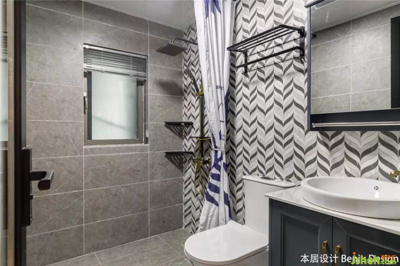 考慮到預算的問題,簡單的利用浴簾隔開干濕區(qū)代替玻璃門。裝修設計