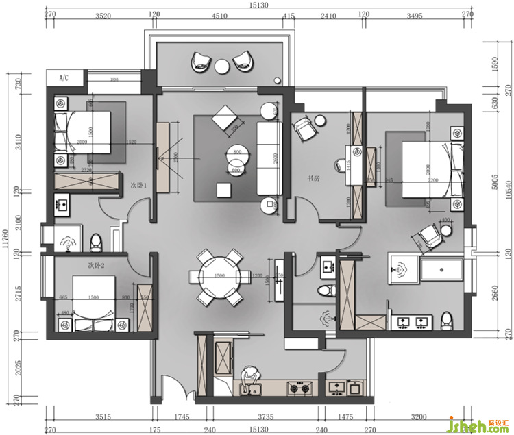 此案是華潤城潤府精裝房軟裝設(shè)計案例,室內(nèi)設(shè)計師在原始精裝格局不變的情況下,做了如下軟裝的搭配與設(shè)計: