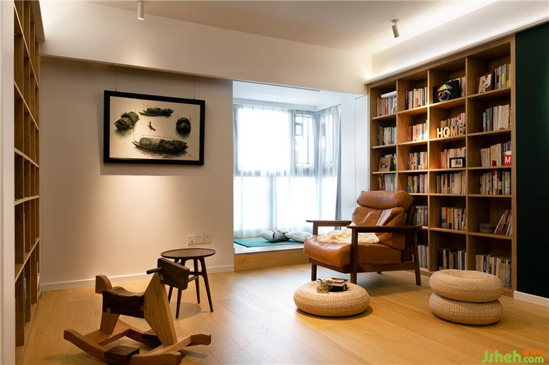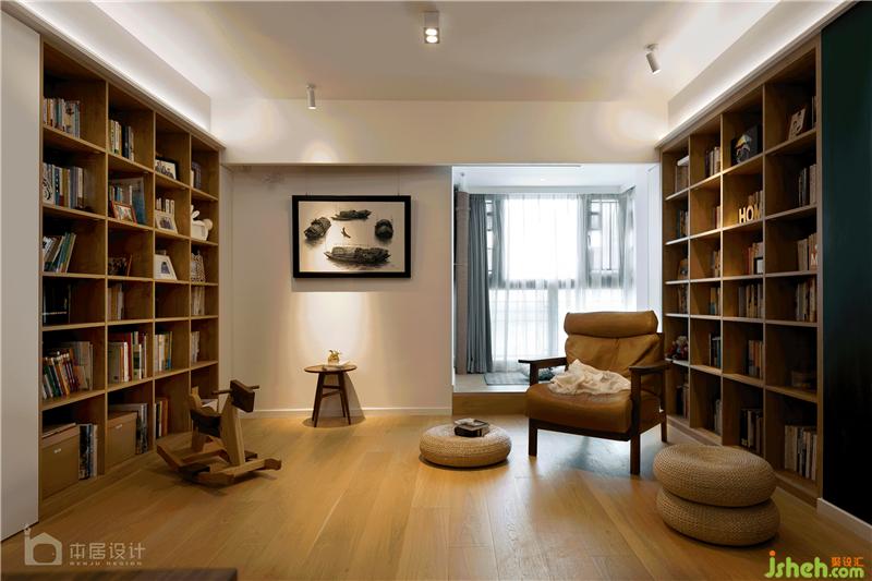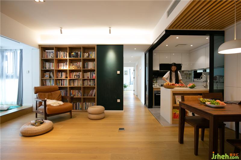 ▼在家居精細(xì)化的變化中,就提到了客廳沙發(fā)電視變多元起居。就如該案例一樣,客廳無(wú)沙發(fā)電視背景墻設(shè)計(jì),取代的是兩面頂天立地的書(shū)柜,要說(shuō)為什么是書(shū)柜,因?yàn)閻?ài)學(xué)習(xí)的一家人,平常都喜歡看書(shū)。室內(nèi)設(shè)計(jì)師