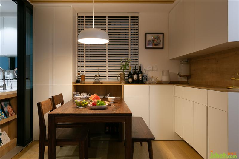 ▼可分可合式開放廚房的社交屬性,讓設(shè)計(jì)師更需要注意廚房與其他空間風(fēng)格上的統(tǒng)一協(xié)調(diào)性。圖中也可以看出,白色與木色的搭配呼應(yīng)了餐廳空間,而極致的收納,也在廚房中得到了充分的體現(xiàn)。室內(nèi)設(shè)計(jì)師