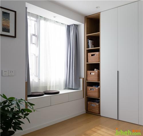 ▼越住越大的家,一定是打哪都會體現(xiàn)極致的收納。主臥盡頭是整面L型的柜體,門開中間,門后即柜體收納,空間優(yōu)化更顯合理,而L型的柜體區(qū),也可以充當(dāng)衣帽間的功能。