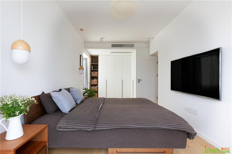 ▼寬暢的主臥空間,咖色的條紋床品在線條的紋理下彰顯著細(xì)膩質(zhì)感。純白的主色調(diào)配搭著木質(zhì)底色,將臥室空間打造的優(yōu)雅而舒緩。而床頭的小雛菊綠植,也增添了幾分空間的生機(jī)與活力。室內(nèi)設(shè)計(jì)師