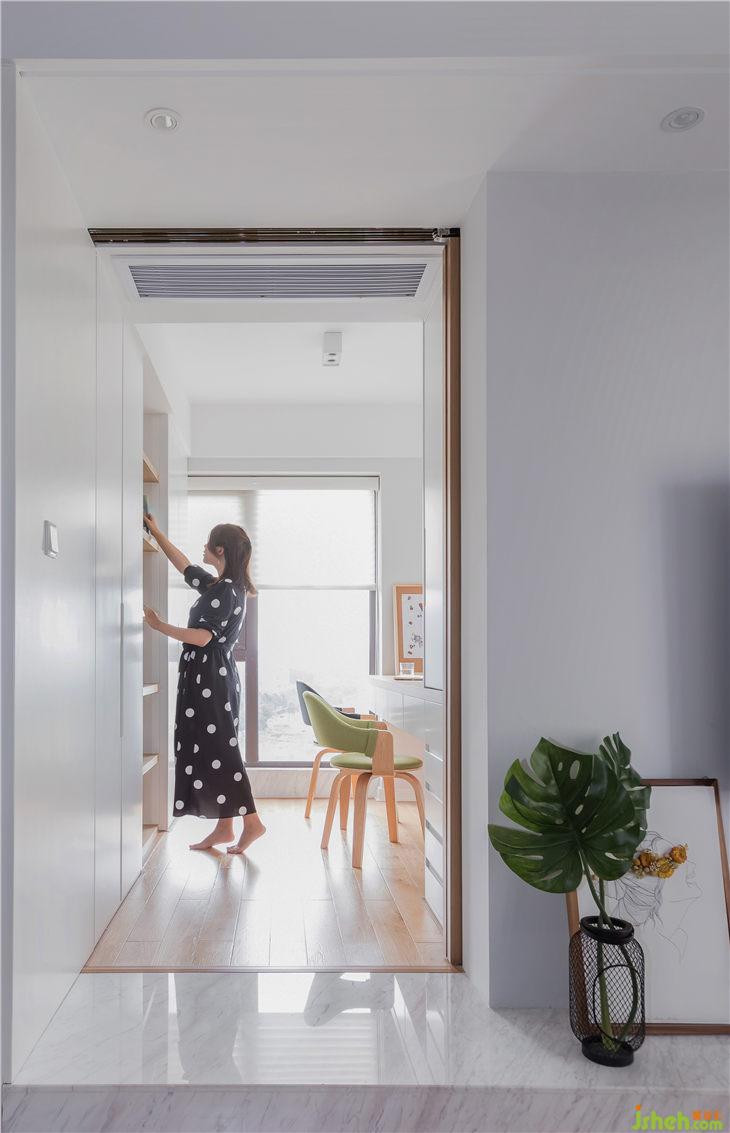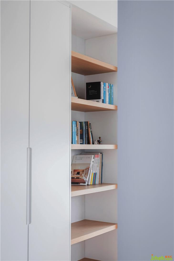 業(yè)主平時很喜歡看書,也很喜歡收集書籍,在做房屋設計的時候,定制了開放式書柜。開放式的書柜可以說是與書零距離的感覺,隨手就能拿到書,非常的方便,而且看起來比較整潔,一眼看去書柜上面擺放著滿滿的書,一覽無余,你是不是也有種想拿起書本閱讀的感覺呢?