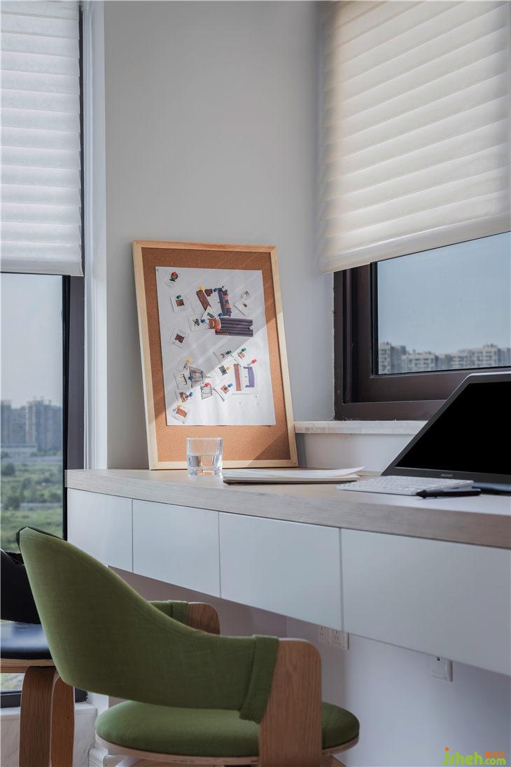 考慮到戶主工作的特殊性,窗簾采用了風琴簾,陽光通過風琴簾照射進來光線更加柔和,創(chuàng)造了良好的工作氛圍。