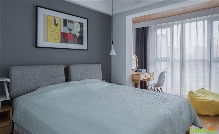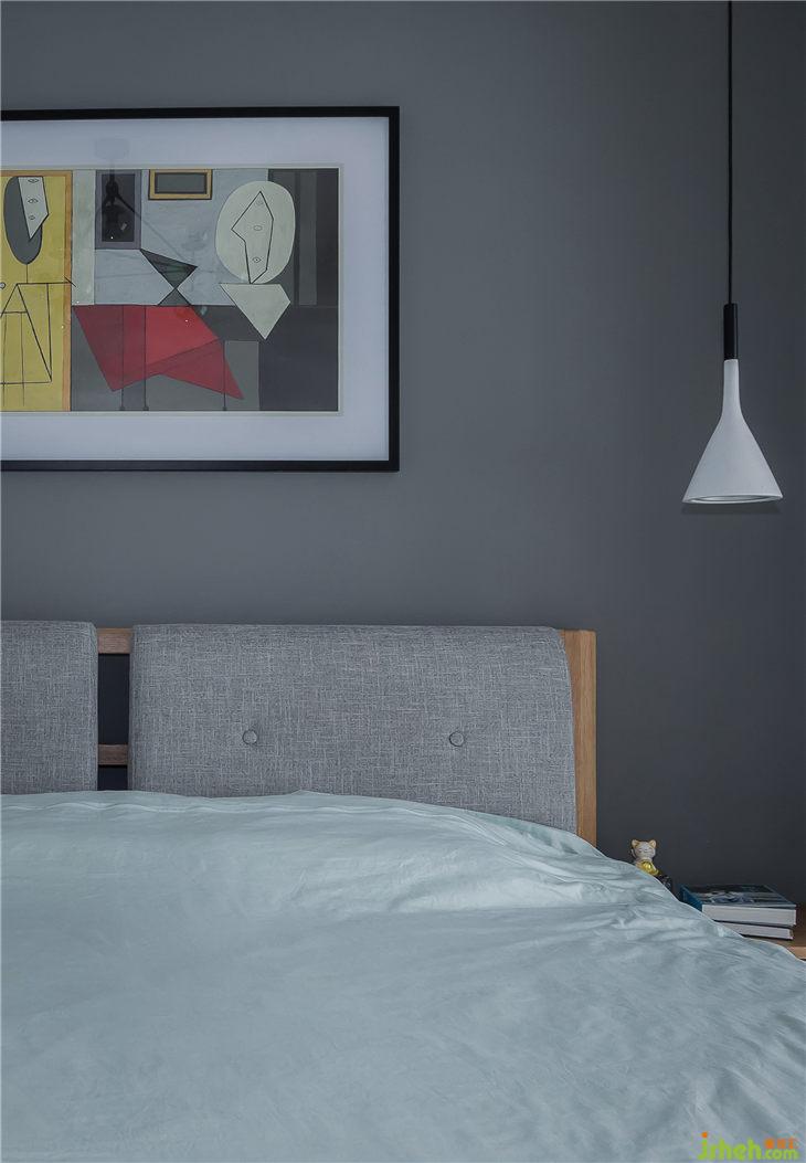 臥室整體為了安靜舒適,選擇深灰色的涂料,有人擔(dān)心很冷的,加入木色家具、米色紗簾空間就溫馨起來(lái)啦。