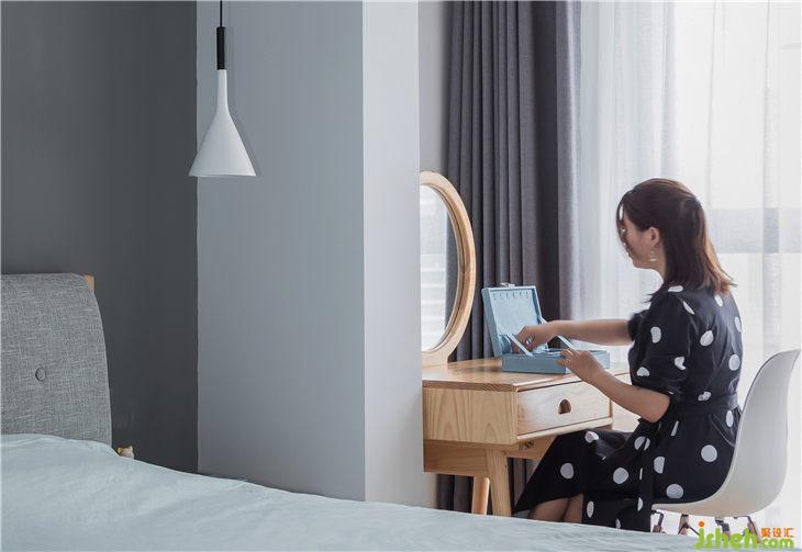 床頭背景采用高級(jí)灰,床品延續(xù)了整體色調(diào),床頭裝飾畫(huà)采用撞色手法,冷暖色調(diào)的配合讓空氣盈滿(mǎn)安然靜謐的氣息。這種適宜睡眠休憩的氛圍讓人有種想立刻就躺在床上的沖動(dòng)。