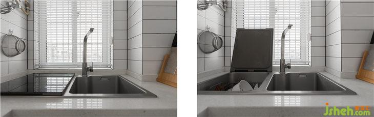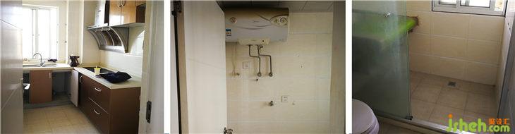 很難受的是廚衛(wèi)方面,進入廁所要從廚房那邊進入,且廚房的操作臺面好小。一個L型廚房除了一個水槽,一個油煙機,一個冰箱的區(qū)域,沒了。而衛(wèi)生間比較奇葩的是浴室柜竟然在淋浴房。。。??上朊看蔚牟僮髟撚卸嗖环奖?。