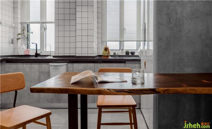 實木餐桌與廚房形成半開放式,溫暖了這個小小的空間,同時讓生活既平凡普通有充滿情趣!