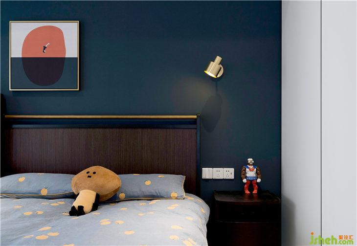深藍(lán)色的背景墻搭配著LINK的床真的是超級出效果!