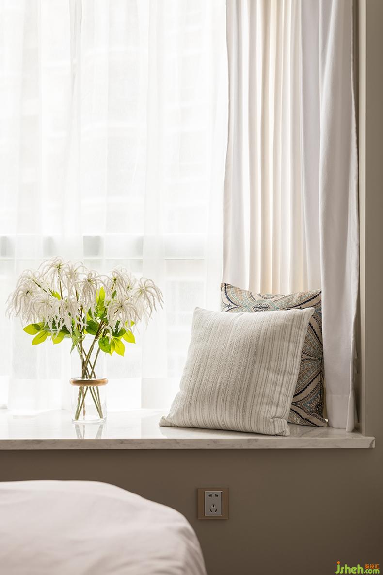 金屬、玻璃材質(zhì)的擺件散發(fā)出光澤感,搭配飄窗的鮮花裝飾,淺淡之中頗有美式的優(yōu)雅風(fēng)范。深圳設(shè)計(jì)公司