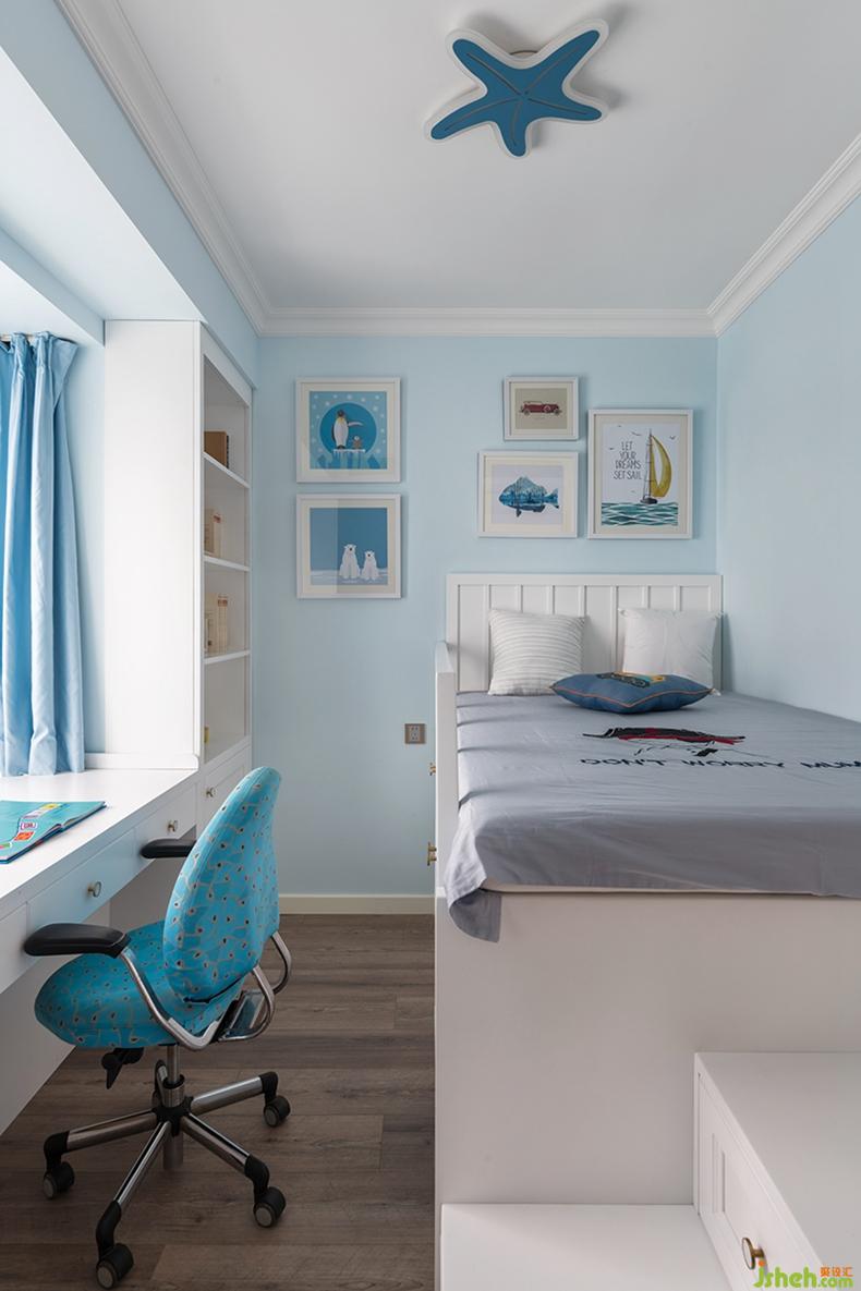 設(shè)計師將飄窗改成書桌,最大化利用空間的功能性,讓孩子靜心閱讀學(xué)習(xí),從兒童床到臺階,還暗藏著儲藏小竅門,將收納做到細致入微。