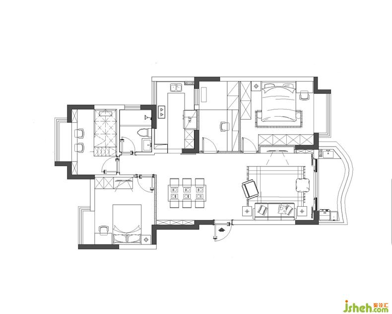 衛(wèi)生間在白色主調(diào)中加入金色的小裝飾,為呆板的空間增添了一點兒俏皮。深圳設(shè)計公司