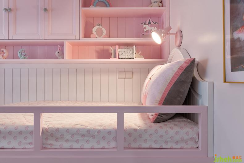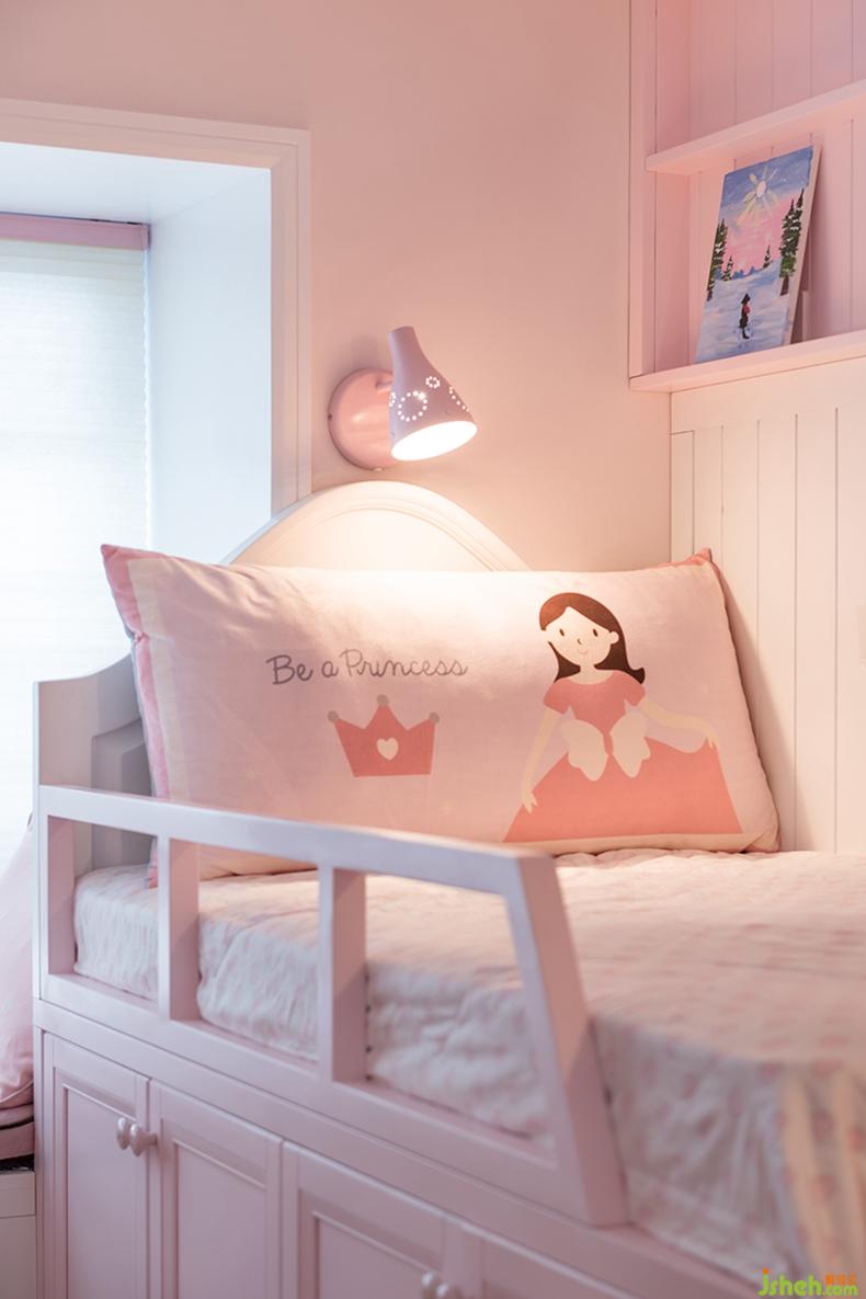 淺粉色的兒童床仿佛翻開了一本童話故事,書寫著夢(mèng)幻和美麗,夜深入眠時(shí),伴著溫馨的床燈,枕著俏皮的粉色枕頭,一個(gè)美夢(mèng)便悄悄誕生了!