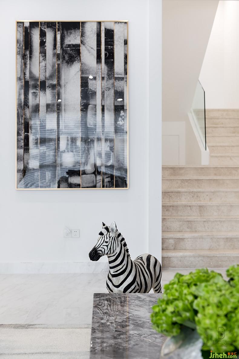 流線型燈飾進一步延伸空間高級感,抽象畫、斑馬裝飾充滿巧思,讓藝術性與舒適性達到平衡。