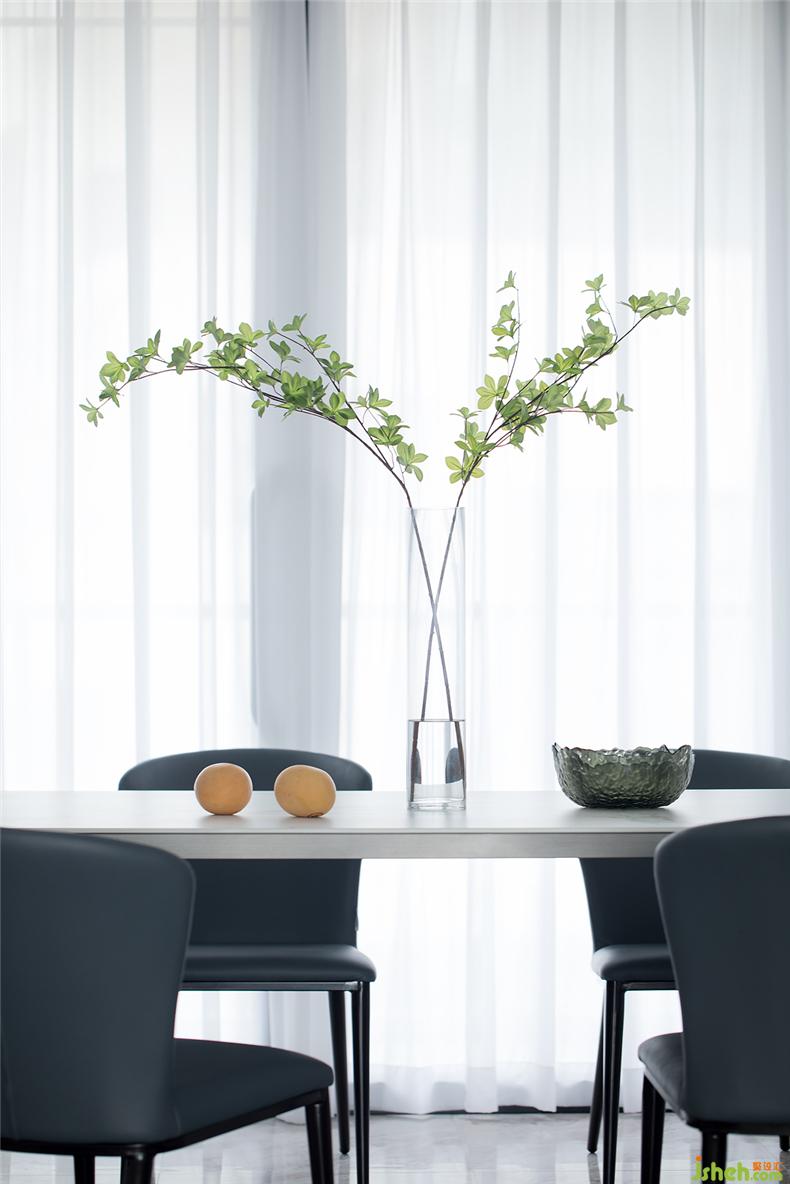 餐廳大面積的落地推拉門(mén)讓整個(gè)空間通透敞亮。