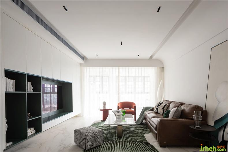 設(shè)計(jì)以白色為主調(diào)亮空間,并通過(guò)客廳、兩側(cè)開(kāi)窗最大限度的引入自然光,開(kāi)合之間,風(fēng)也能自由游走,解決了原始格局采光、通風(fēng)較差的問(wèn)題;