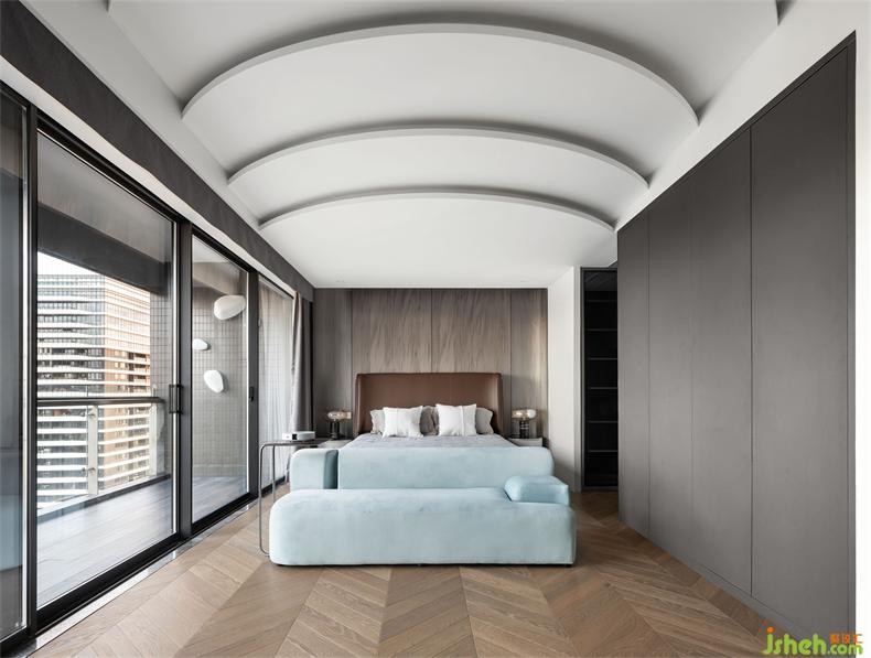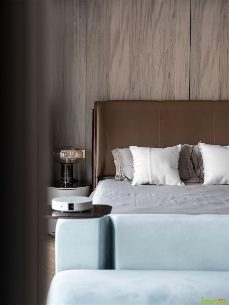 從開(kāi)放到私密,從淺明到深邃,主臥的自然化處理,通過(guò)原木材質(zhì)與深色系列色調(diào)達(dá)到平衡,而白色與線條也在其中重構(gòu)屬于業(yè)主夫婦的氛圍感,成熟穩(wěn)重而不失風(fēng)趣。