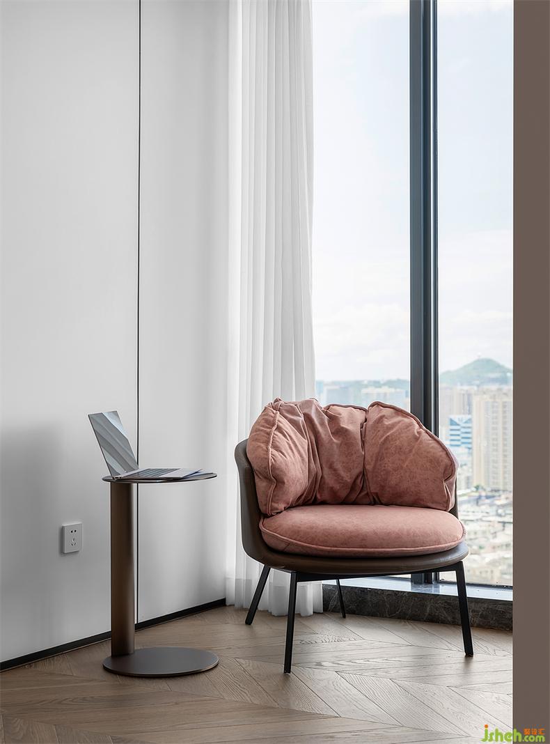 此外,無(wú)論是生活空間還是居住空間,室內(nèi)設(shè)計(jì)師無(wú)與倫比的細(xì)節(jié),塑造了純簡(jiǎn)的視覺(jué)意向,家具的定制、材質(zhì)的搭配也都極為克制,但與前者不同的是,色彩在逐漸豐富。