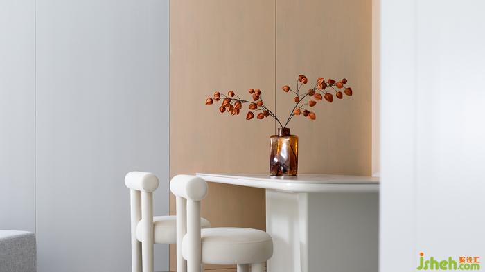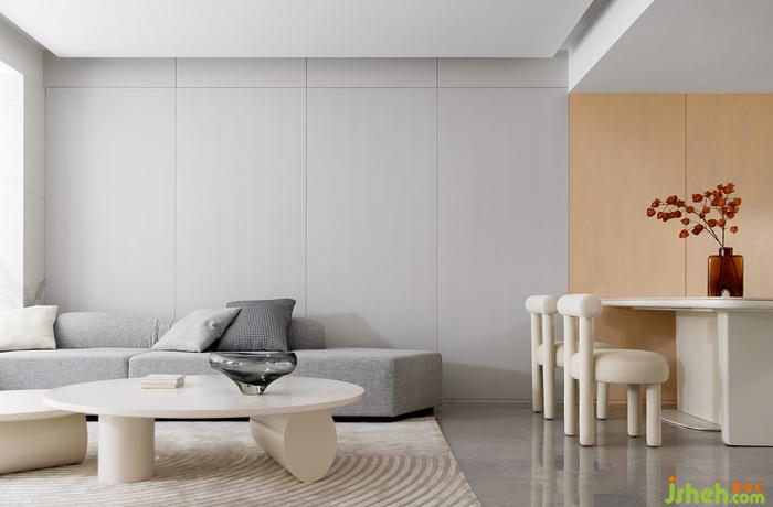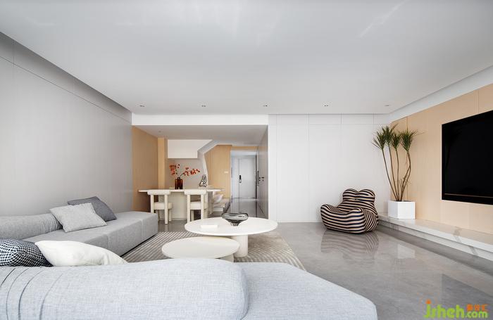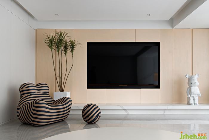 電視背景墻一整面的暗藏收納柜,大大滿足了收納需求。深圳家裝設(shè)計(jì)原木色的柜門與餐廳呼應(yīng),讓空間溫馨而舒適。