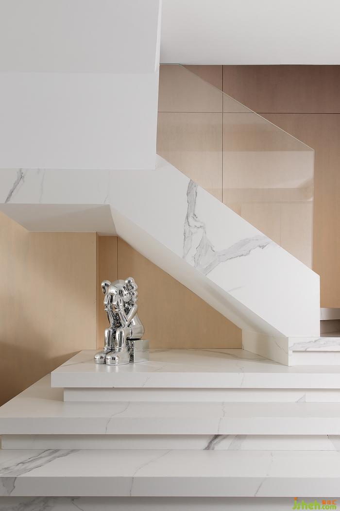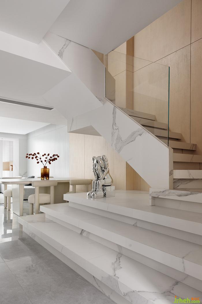 深圳家裝設(shè)計魚肚白的巖板做為樓梯踏步,簡約而大氣。