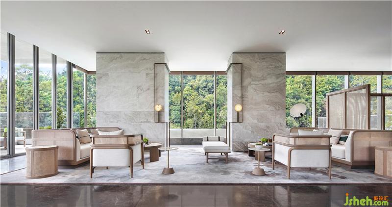 Large floor-to ceiling glass curtain wall is like a landscape painting scroll, introducing natural scenery into the interior, conveying the relaxed nature and liberating people from the anxiety of the city.