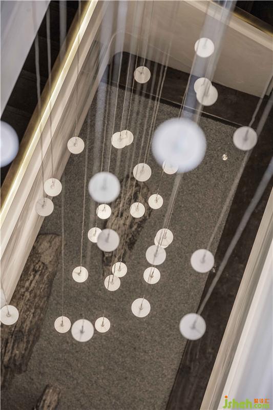 The wall lamp finished by coordination of FF&E and hard deco. is a highlight of the space, it gives us more art feeling than function on design.