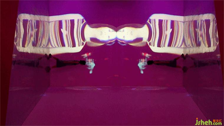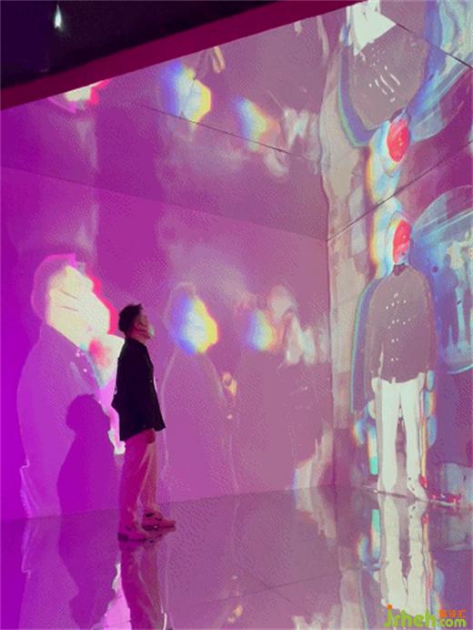 見我VIPASSANA的沉浸式互動(dòng)體驗(yàn)是一個(gè)基于最新人像識(shí)別技術(shù)和cache技術(shù)的多媒體藝術(shù)作品。展廳設(shè)計(jì)通過Feedback和Image delay 技術(shù),對(duì)現(xiàn)場(chǎng)觀眾實(shí)時(shí)捕捉的影像可以產(chǎn)生不斷回饋的視覺效果。通過將觀眾的身影與線條圖進(jìn)行交織,我們?cè)诳臻g中形成了一系列抽象的藝術(shù)畫面。觀眾可以與這些畫面進(jìn)行互動(dòng),與自己的影像,與時(shí)間對(duì)話。