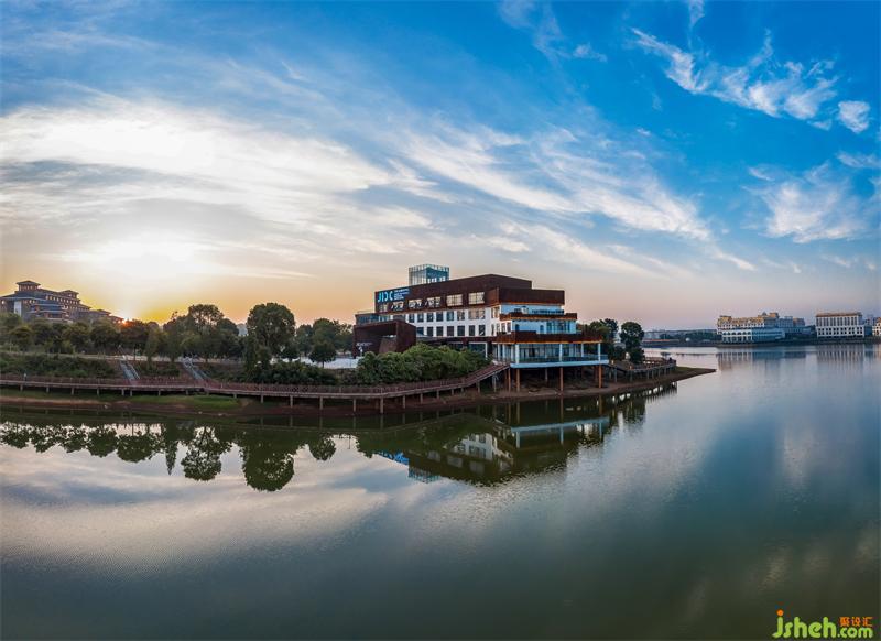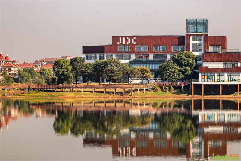 中心三面圍繞著龍津湖畔,野開闊,三面環(huán)水,風景優(yōu)美,猶如鑲嵌在龍津湖面的一顆明珠。龍津湖湖面占地面積435000㎡,是江西市區(qū)內(nèi)最大的水系公園,也是繁華都市難得的一片心靈棲息地,生活的閑適與愜意是這里的真實寫照。湖邊綠樹成蔭,中心綠樹肆意生長,盡享陽光的恩澤。棧道碧湖旁,有一棟散發(fā)著硬朗舊工業(yè)氣息的四層建筑坐落在波光瀲滟的龍津湖畔,散發(fā)著創(chuàng)新與設計的氣息,那就是江西紅品創(chuàng)新設計中心(JIDC)。