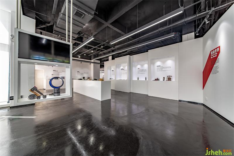 整個展廳墻面借助白色墻面和紅色鏡面延展動線視野,樸素的材料突出陳列,用鋼結(jié)構(gòu)和玻璃做墻面,增強室內(nèi)空間感和采光面,簡潔明確。