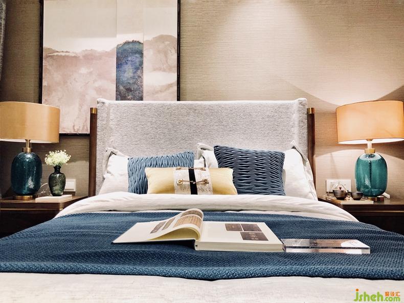 主人對生活的情致最能體現(xiàn)在每一個臥室中。斑駁的水面掛畫、深沉的藍色浪花紋路,布藝以及深灰的色彩搭配,都在告訴我們,居住者思想深沉而向往靜謐。