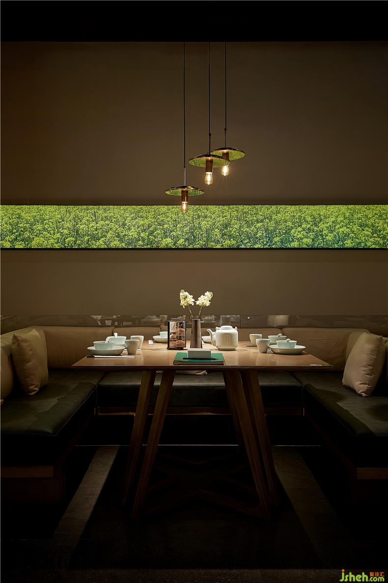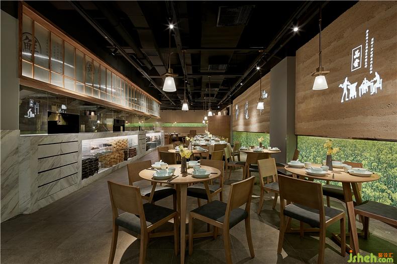 開(kāi)放式明檔是店內(nèi)重要的展示舞臺(tái),每一個(gè)灶臺(tái)的廚師都是主角。上方的紗幔上“鮮、熱、真、火、快”五個(gè)大字映入眼簾,道出衡陽(yáng)小炒功夫的精髓。明黃色的吊燈組渲染干凈溫馨的餐廳氛圍,而蒸騰的鍋氣試圖喚醒你回憶里故鄉(xiāng)的裊裊炊煙,廚師烹飪過(guò)程一覽無(wú)余,菜籽油混合小炒肉的香氣撲鼻而來(lái),塑造出餐廳的獨(dú)特氣息,勾人食欲,餐廳設(shè)計(jì)使食客可以充分領(lǐng)略到衡陽(yáng)小炒“食”與“境”的美妙關(guān)系。
