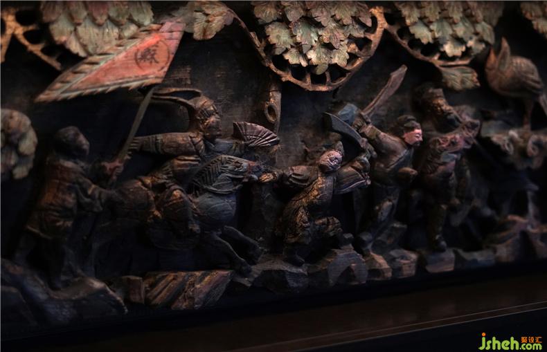 徽雕層次鮮明,極盡雕飾,大繁之風(fēng),精致無(wú)比。沿著匠人的指尖和雕刀,徽州的人文舊事與雅致風(fēng)韻在魔都金融中心的幽靜洋樓中緩緩道來(lái),連接著現(xiàn)代與過(guò)去的詩(shī)意,徽商「賈而好儒」的文化風(fēng)骨展露無(wú)遺。