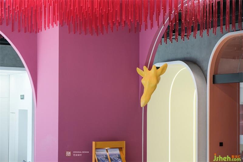 探頭的長(zhǎng)頸鹿,可愛(ài)又俏皮的出現(xiàn)在視野,直播主題空間設(shè)計(jì)不僅多了一分趣味性,還增加了空間的互動(dòng)性。