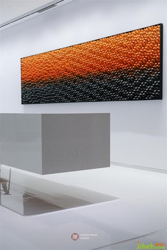 大堂運(yùn)用極簡(jiǎn)現(xiàn)代藝術(shù)的設(shè)計(jì)手法, 融入當(dāng)代藝術(shù)與人文極簡(jiǎn),米白色的懸空大理石臺(tái),墻面是色彩飽和的藝術(shù)畫(huà),簡(jiǎn)單而不單調(diào)。