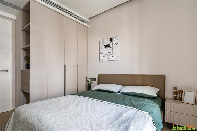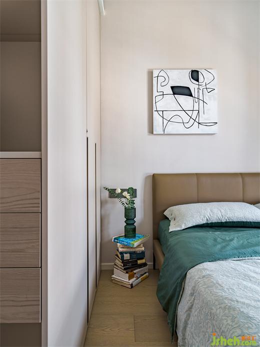 進(jìn)門處增加衣柜側(cè)邊開放格,海境界家裝設(shè)計(jì)既滿足儲(chǔ)物也能讓人進(jìn)入房間時(shí)不覺擁擠壓抑