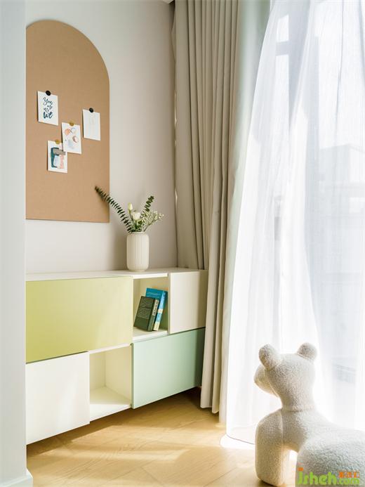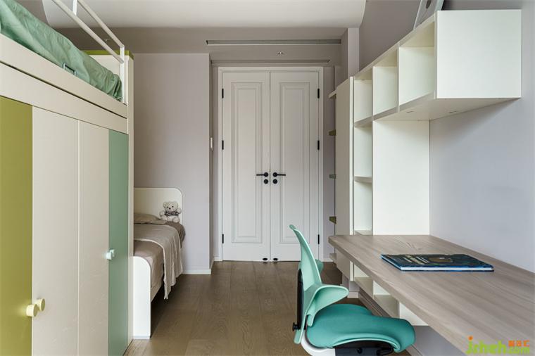 用低飽和度的咖色為主基調(diào),海境界家裝設(shè)計搭配黃色和藍綠色,讓兩個小公主在安靜平和的環(huán)境下學(xué)習(xí)、成長