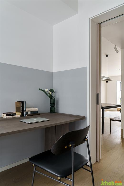 半墻的灰色與窗簾色彩相呼應(yīng),海境界家裝設(shè)計在綠植草木的映襯下,更顯空間情緒的通透干凈與安然素雅