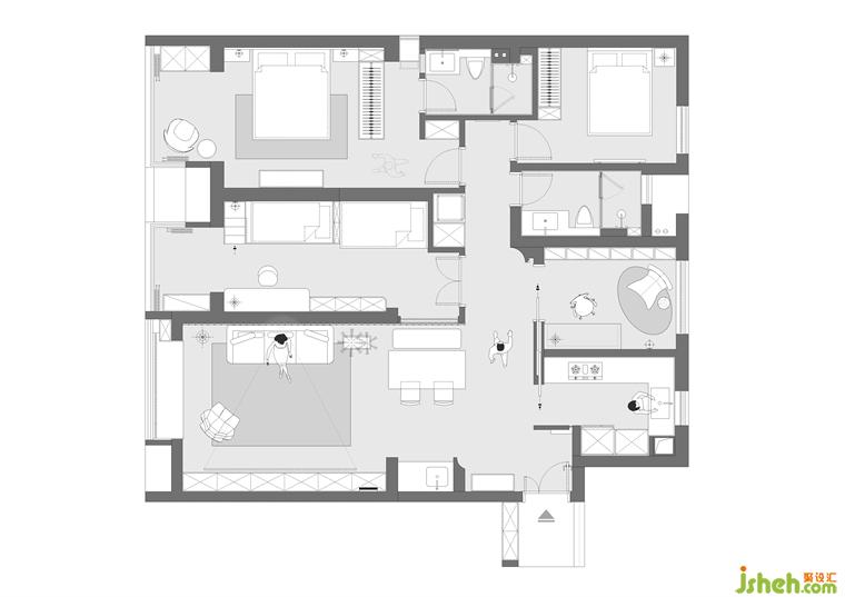 美觀與實用的功能區(qū)域,海境界家裝設計實現(xiàn)干濕分離,將洗衣機外置,保持空間整潔