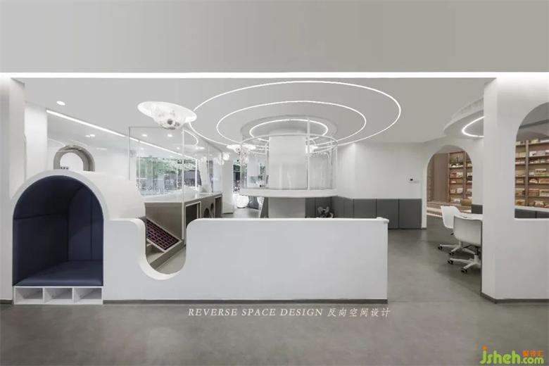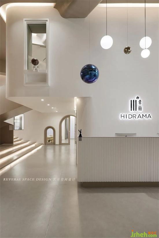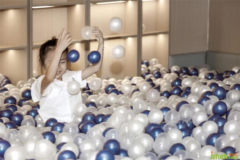 Blue planet, golden planet, white ball lamp, high and low scattered display, astronaut furnishings, rocket pictographic design, the front hall interspersing with multi-functional play area connected to the first floor, so that the whole space is full of children's fun and exploration interest.
