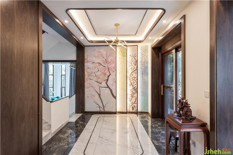 玄關(guān)是對(duì)于家來(lái)說(shuō)是很重要的部位,進(jìn)門(mén)的第一印象就是玄關(guān)。于是我在玄關(guān)設(shè)計(jì)上引入了“家中四季”的概念。