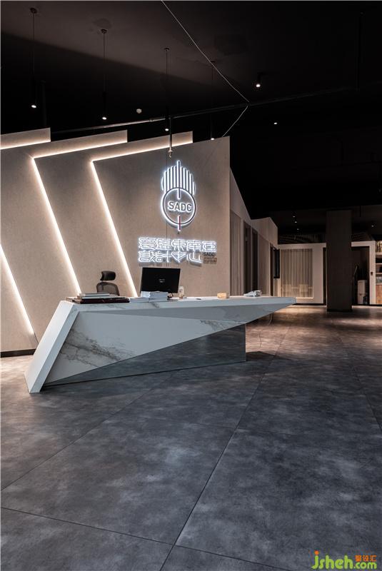 設(shè)計往往帶著很多美好的向往和祝福,西大門入口是唯一的進(jìn)風(fēng)口,我們在這里辦公室設(shè)計了前臺和背景形象墻。