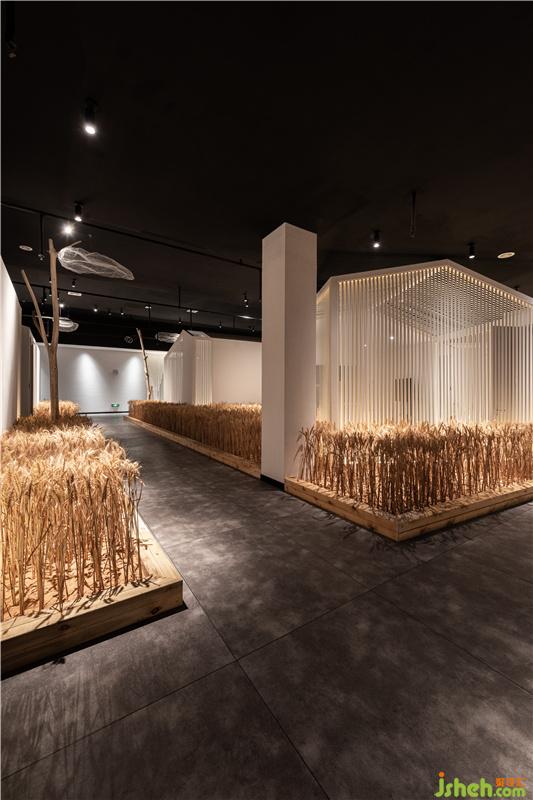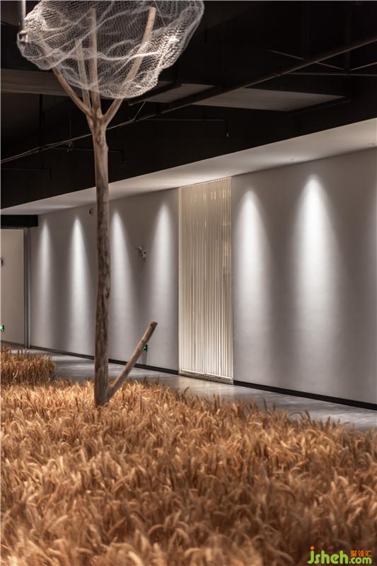 以舞臺(tái)化的設(shè)計(jì)手法,打造夢(mèng)幻般的意境,虛擬結(jié)合現(xiàn)實(shí),周邊的墻體和頂面,以黑色作為底色,模糊邊界,拓寬想象的空間。