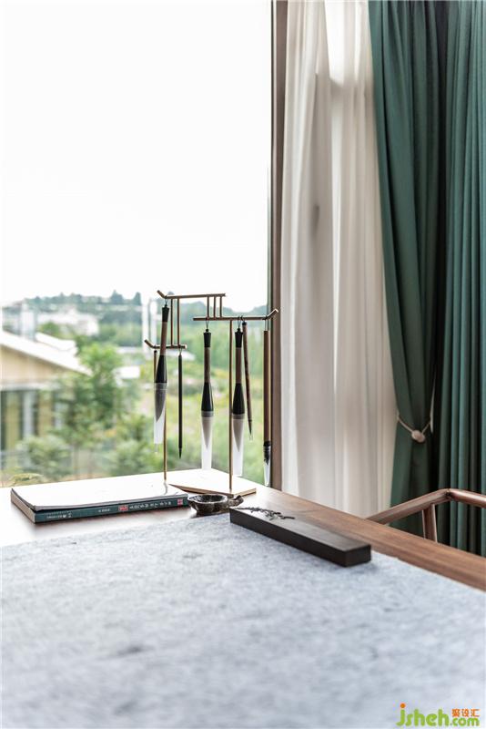 松軟的坐榻、紙上未干的字跡、排列有序的茶具、幾只兔尾草。