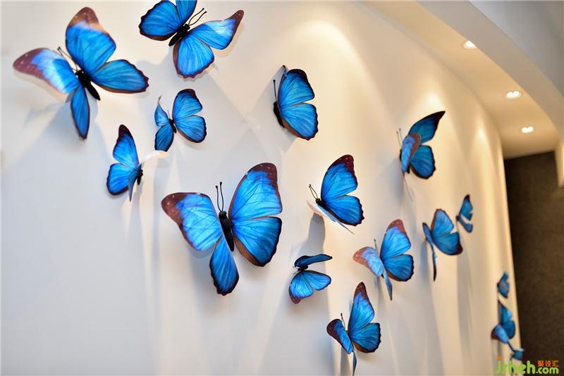 空間打破了傳統(tǒng)的布局方式,運用雕塑的手法塑造空間的維度,以鮮花的抽象概念表達空間的特質,引蝶入室過度到彩蝶紛飛的裝飾手法使得“蝶戀花”的主題不言而喻。